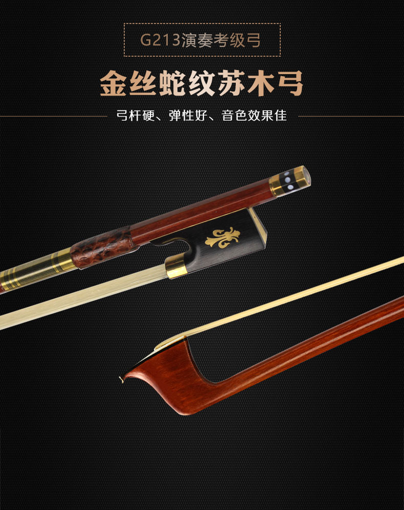 G213金絲蛇紋蘇木小提琴弓中提琴弓大提琴弓