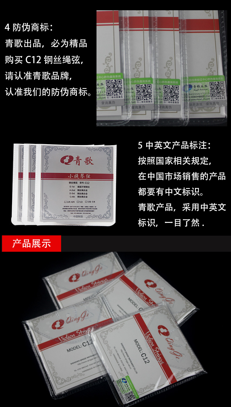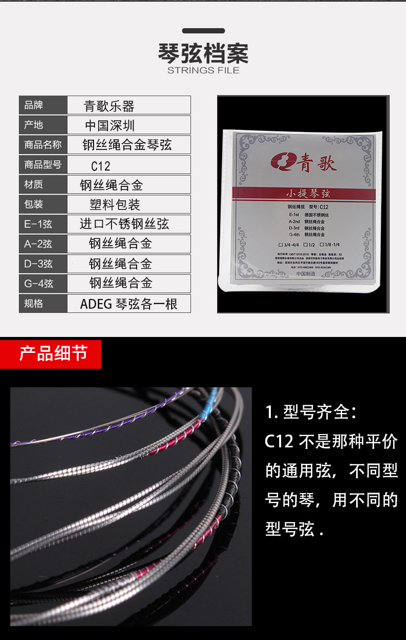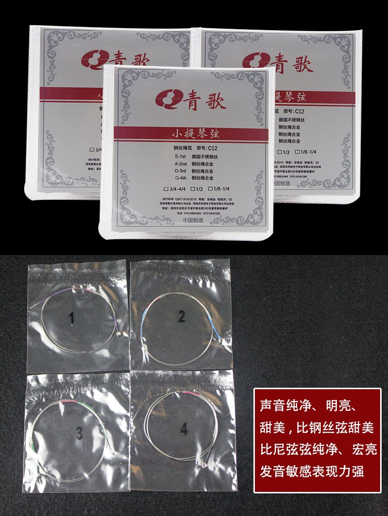 C12青歌牌鋼絲繩小提琴弦